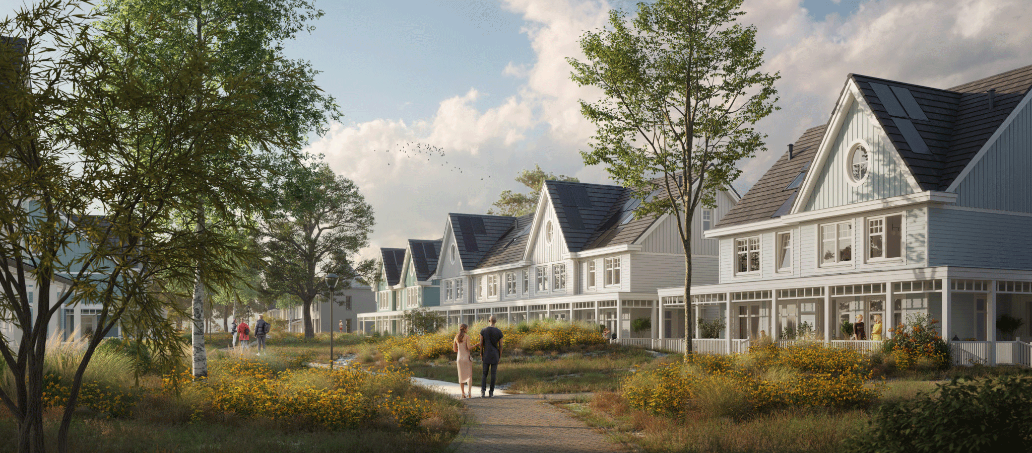 Het ontwerp van Noorderduin eindigt niet bij de voordeur. Het landschap en de woning zijn met elkaar verweven. Volgens architect Britta van Egmond hebben de woningen met veranda een 'vrij nonchalante' en 'informele' entree. En dat is om meerdere redenen bevorderend voor het woongenot. In deze video legt Van Egmond uit waarom dat zo is.